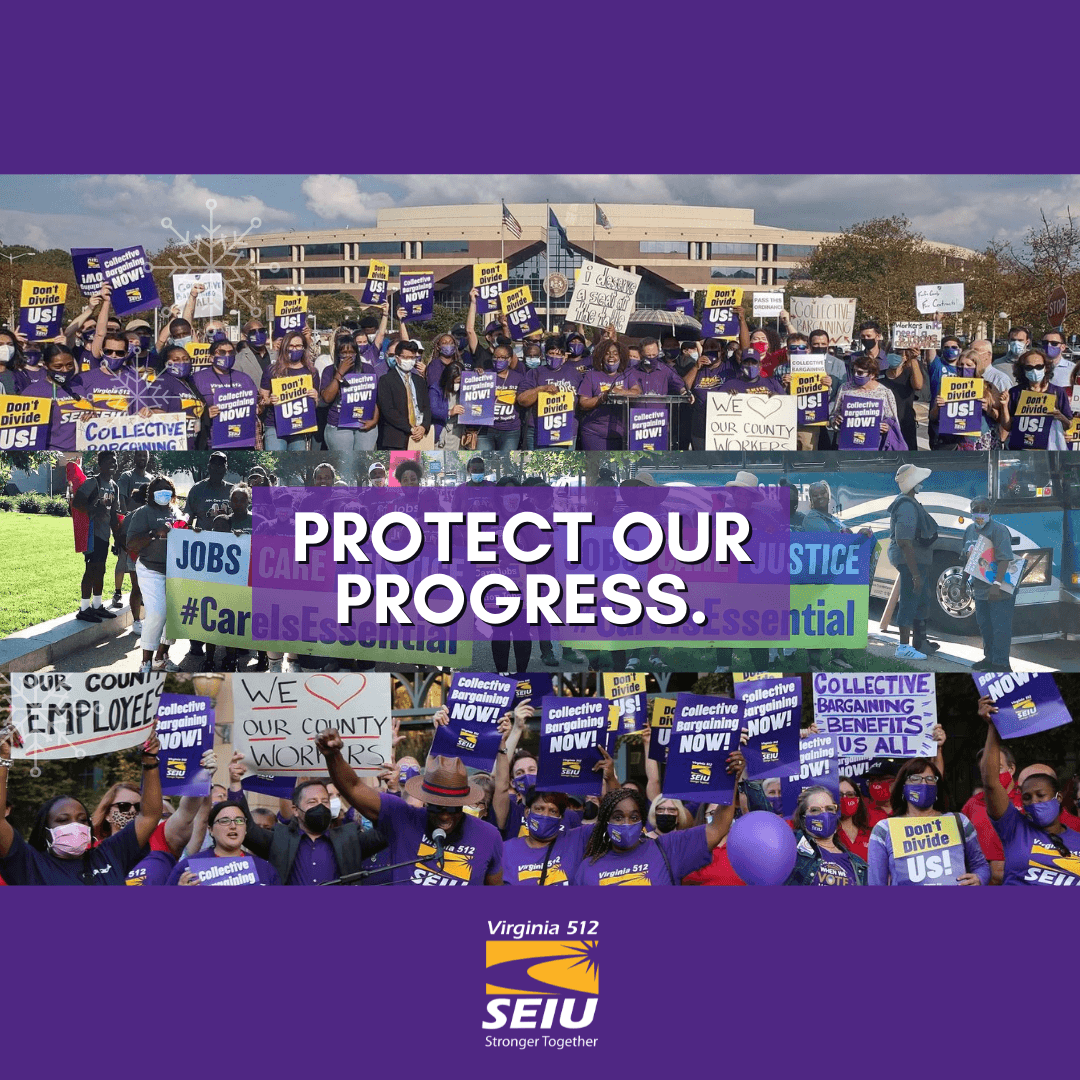 “Together, over the past two years, we’ve made historic progress,” said David Broder, SEIU Virginia 512 President. “We made it easier for working people to thrive by expanding collective bargaining rights, raising the minimum wage and fighting wage theft. We made it easier for people to exercise their right to vote safely. We began to tackle systemic racism. And we took steps to ensure that immigrants to Virginia would be welcomed and supported. Is our work done? Of course not. But we have made tremendous strides, and we must protect our progress.”